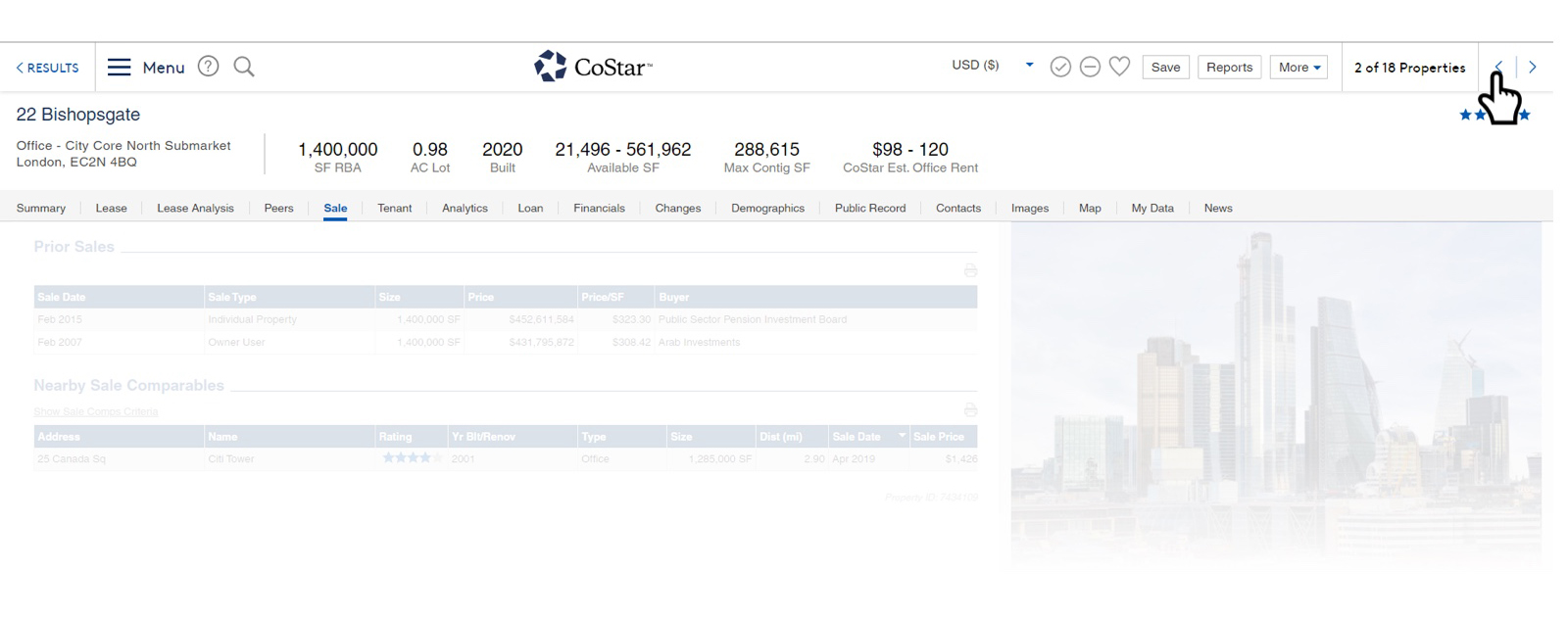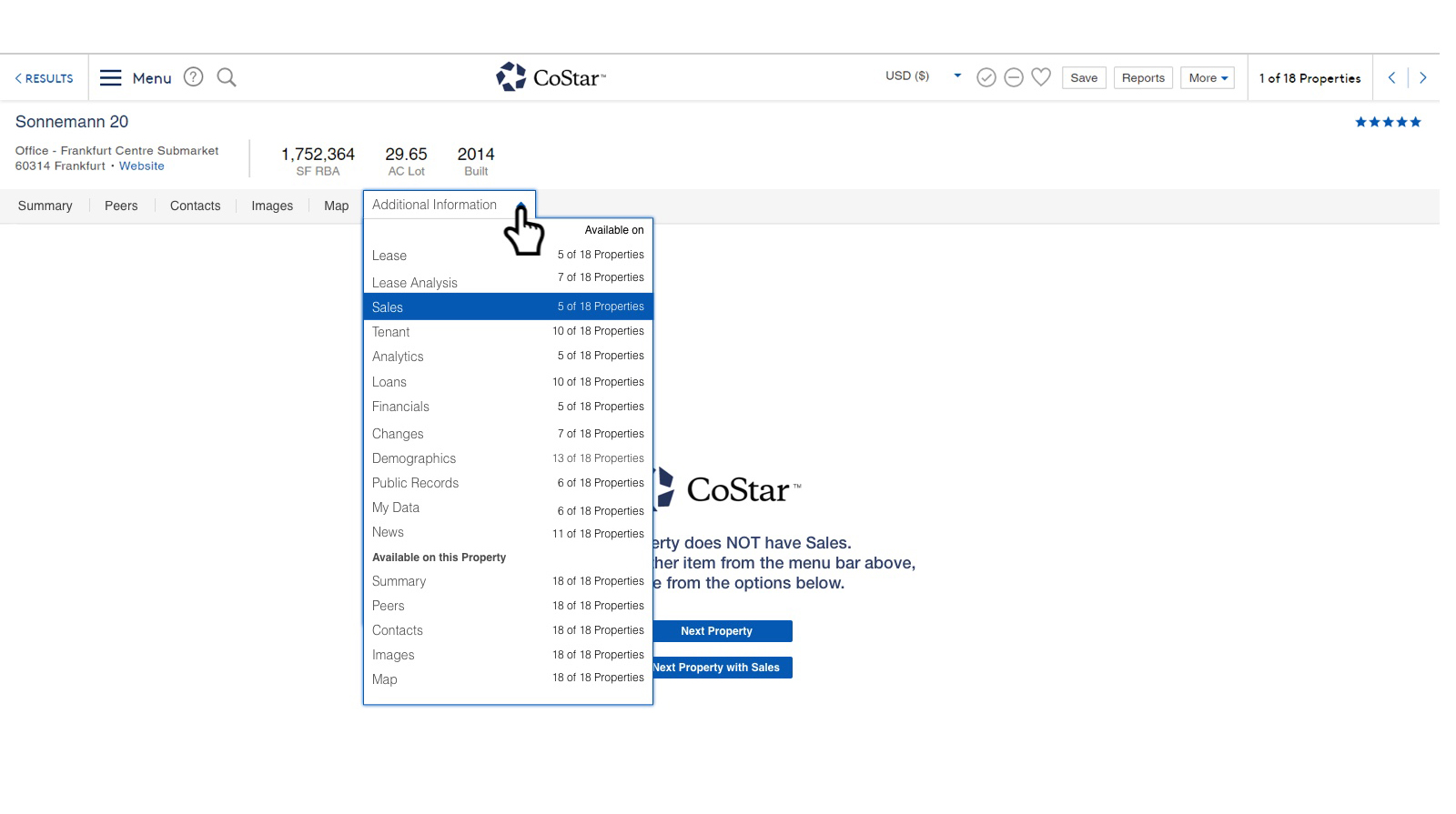 Now when the user paginates through “Sales” to the next or previous property in the result set that does not have sales information…