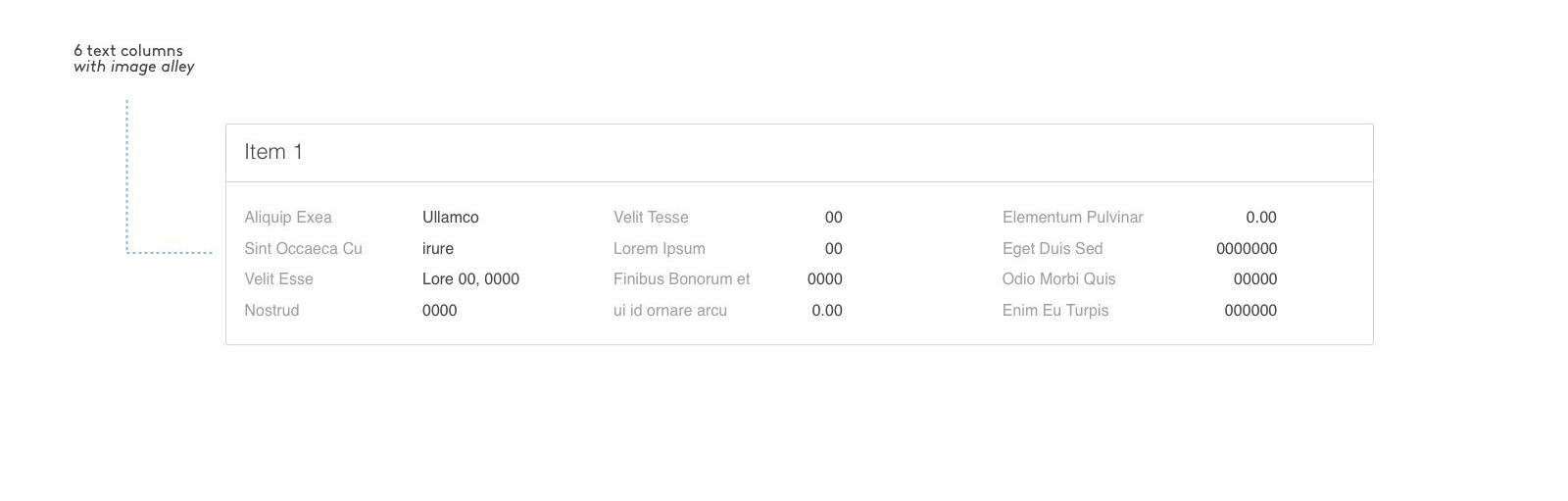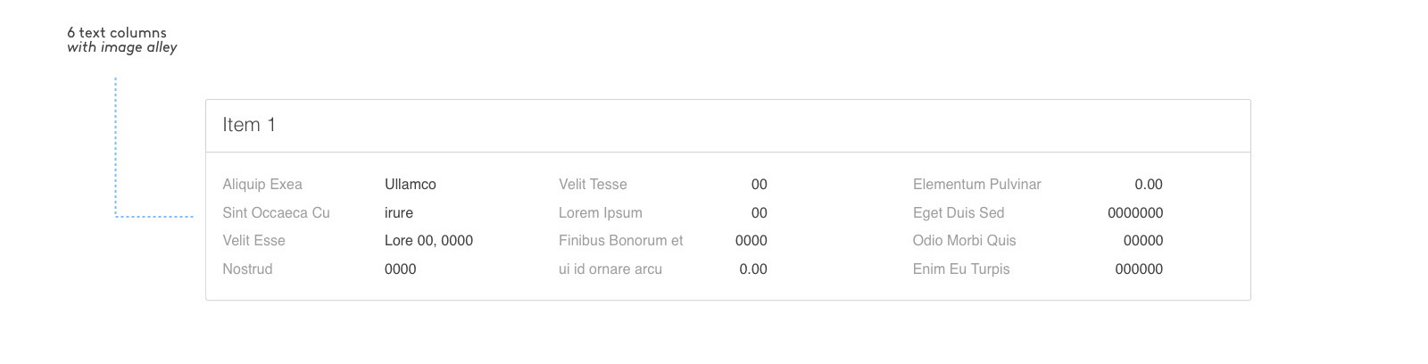a. The recommendation is to use up to 6 text columns max per card. Each text column will occupy 2 grid columns. If there is “no” image alley, there can be up to 8 text columns max per card. Each text column will occupy 2 grid.