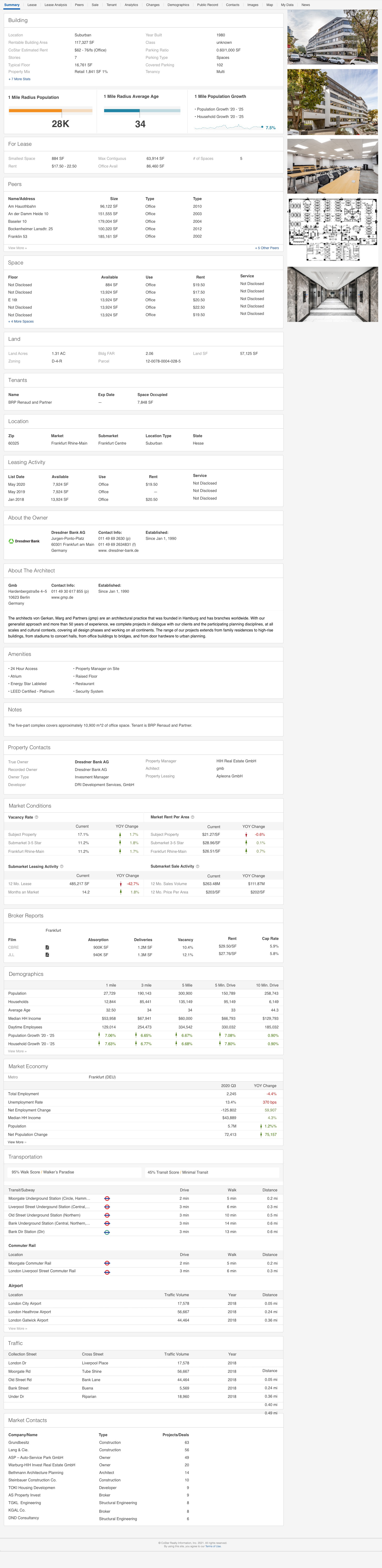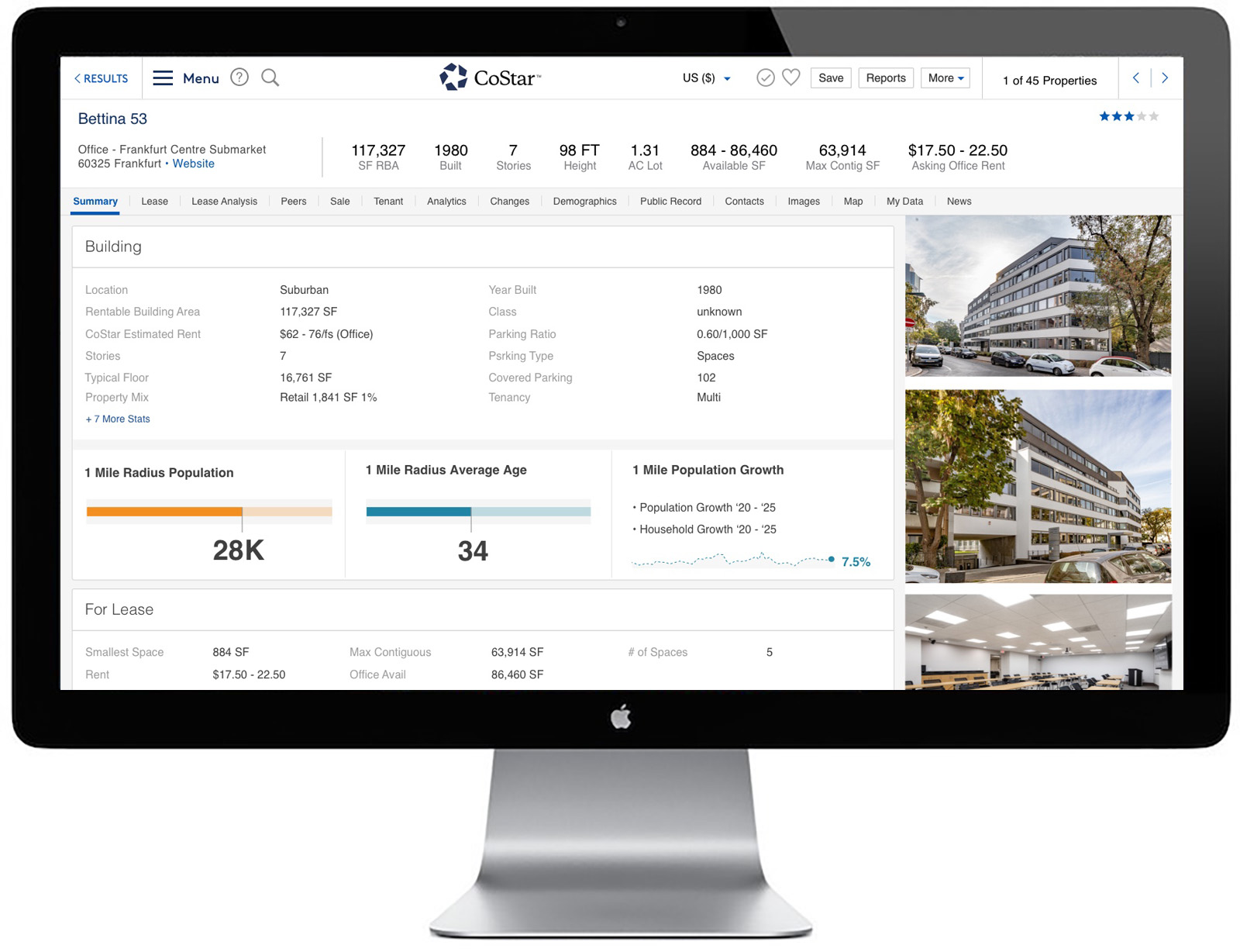 CoStar stands as a global frontrunner in real estate data. The CoStar Suite encompasses a range of Software as a Service (SAAS) offerings including Property Records, Listings, Public Records, Fund Data, Loans, Market Analytics, Lease Analysis, Custom Reporting, Risk Analysis, Lease Accounting, and Lease Management.