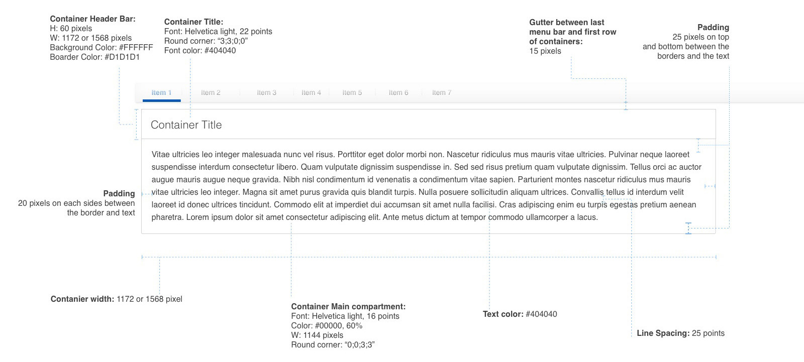 Text Column: The grey boxes with dotted blue lines will always represent “text columns.” Text columns sizes and quantities will change based on needs or designer discretion.