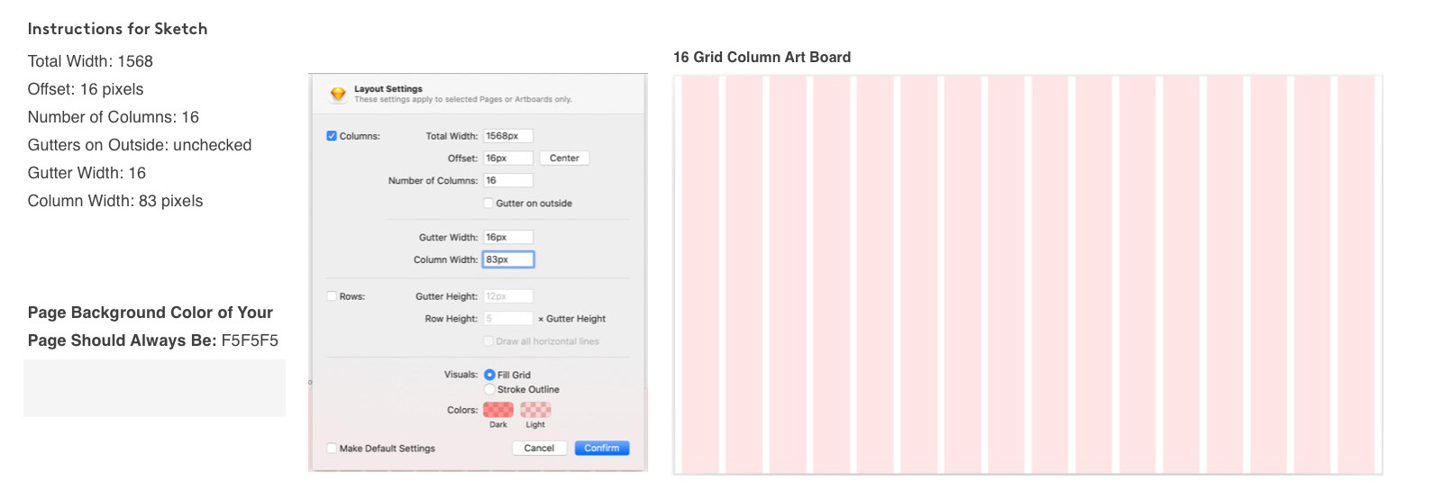 Grid Column: The pink bars will always represent “grid columns.” There will always be 16 “grid columns” on a page, and they will always be the same size.
